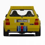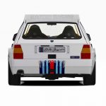 Para completar el atractivo racing, se elimina cualquier techo corredizo, así como el limpiaparabrisas trasero y otros pequeños detalles innecesarios. La pintura completa se realiza con el método especial Xirallic® de triple capa, con reflejos metálicos típicos. El toque final está representado por algunas insignias de identificación “Miki Biasion Martini Racing Evo” elegantemente distribuidas en todo el coche.