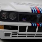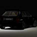 En la parte delantera encontramos la parrilla original Lancia pintada en negro mate y luces especiales, de serie pero revisadas con tapas interiores negras. Los faros adicionales en la parte inferior del parachoques desaparecen, dejando espacio para las tomas de aire del sistema de frenado delantero. Los espejos típicos del grupo A delgados y de carbono también llegan directamente del departamento de carreras.