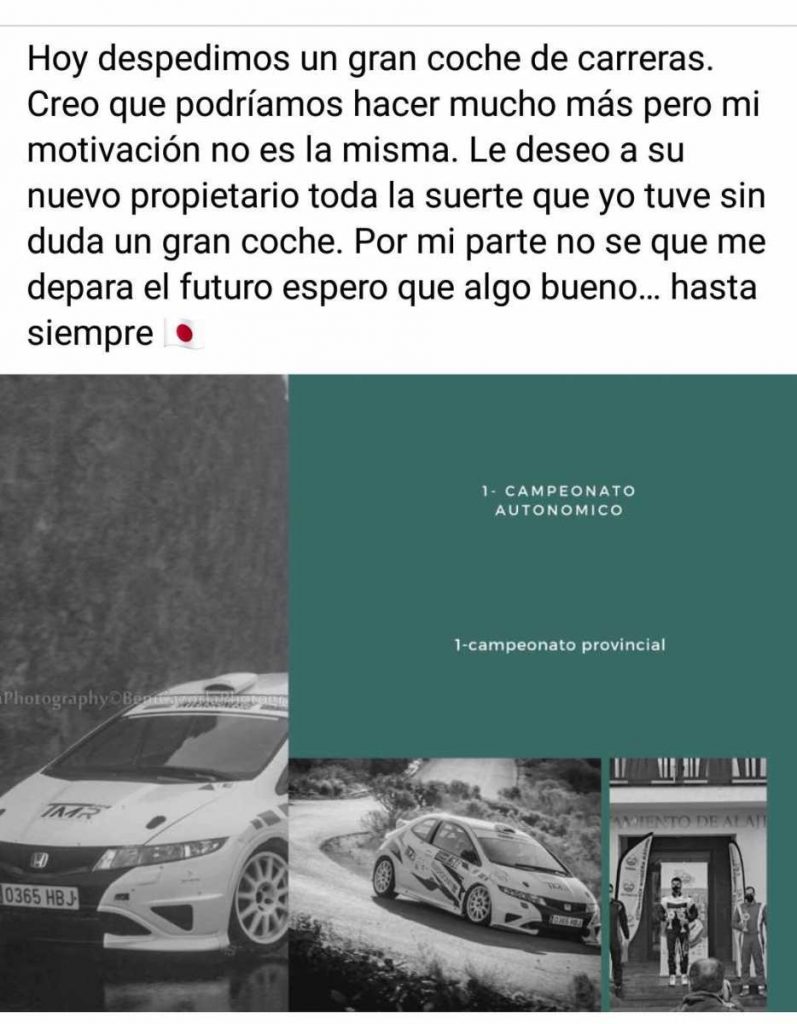 A pesar de que la temporada 2020 fue mágica para el piloto tinerfeño Tony Gorrín, logrando el título de campeón de Canarias y de Tenerife de Montaña en la temporada 2020 en el apartado de turismos, desde hace meses ha puesto a la venta su Honda Civic Type R R3, logrando cerrar la operación este martes.