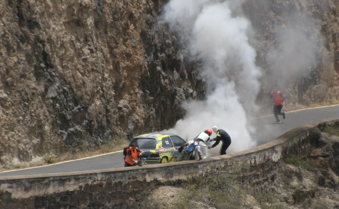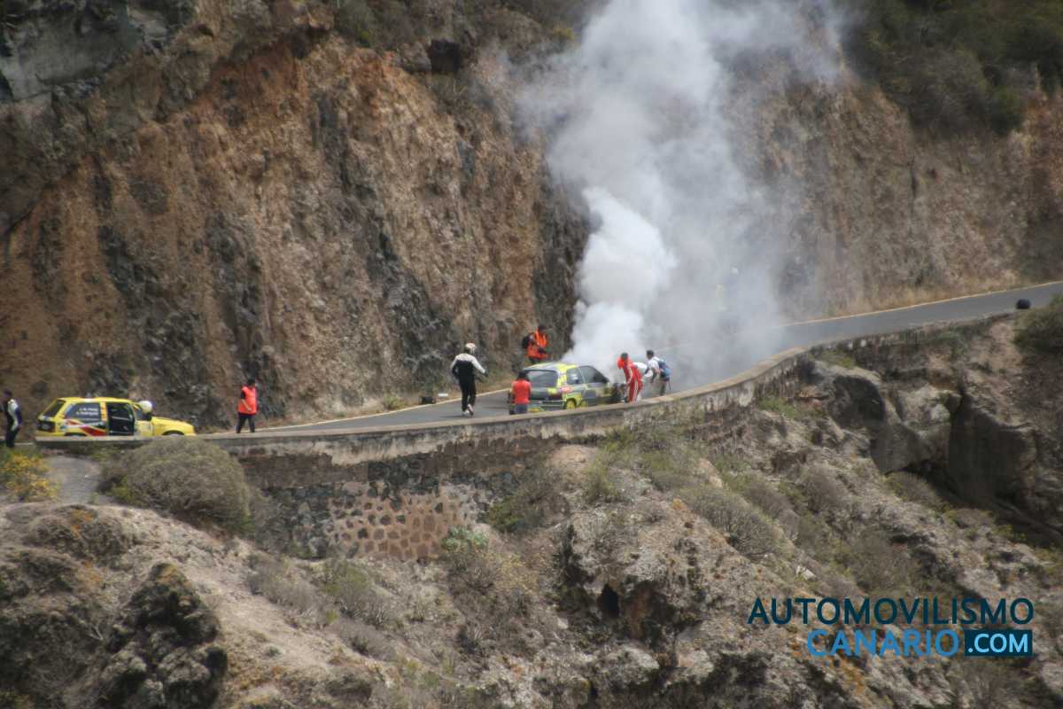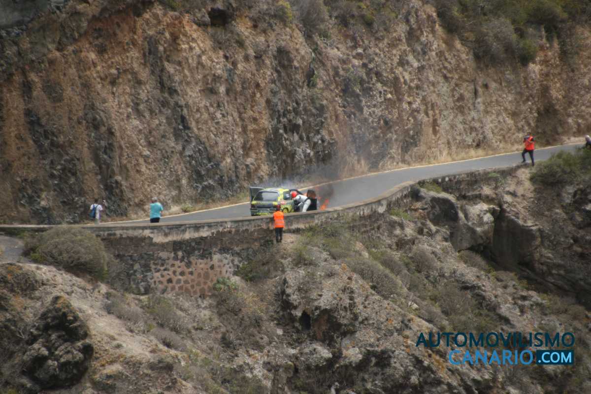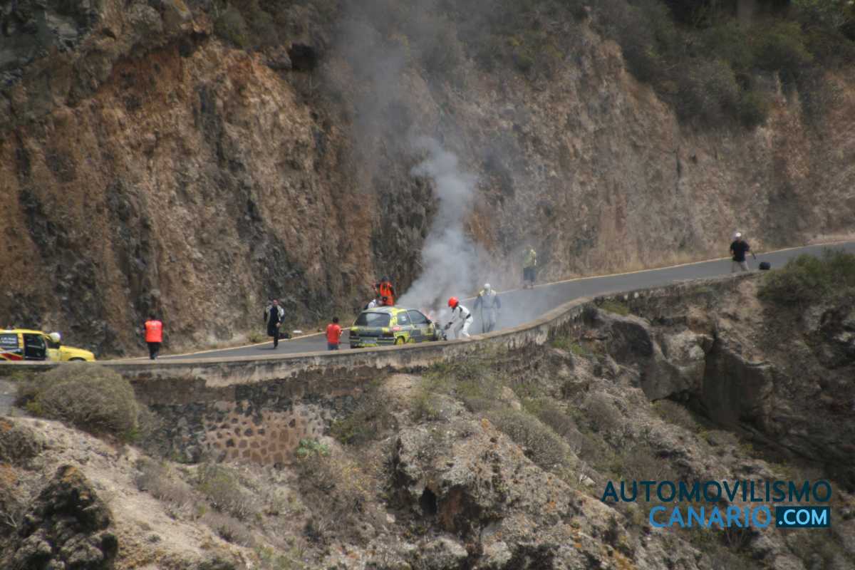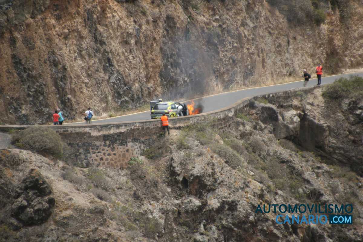 El Shakedown de la edición 2021 del Rallye Comarca Norte de Gran Canaria no será recordado con cariño por los grancanarios Jonathan Nuez y Aday Ortiz puesto que en unas de sus pasadas un conato de incendio casi incendia por completo su unidad. La ayuda de los tres equipos que venía detrás, sumada a la llegada de los servicios de extinción de incendios evitó males mayores, aunque el daño material es mucho. Lo más importante, que tanto piloto como copiloto están bien.