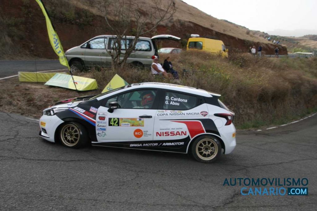 Una salida de carretera truncó las opciones de Daniel Cardona y Gabriel Abou de seguir progresando en la Copa Nissan Micra en el Rally Comarca Norte de Gran Canaria, donde estaban con los mejores de la monomarca.