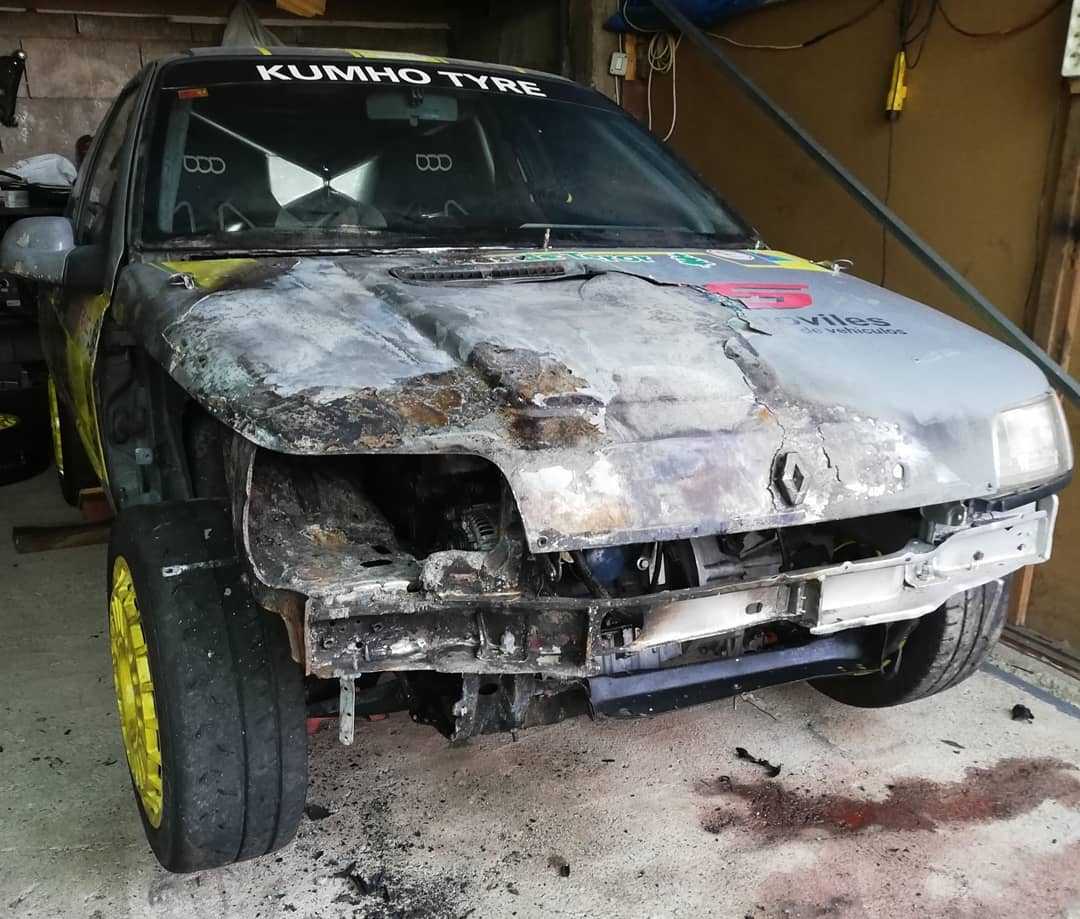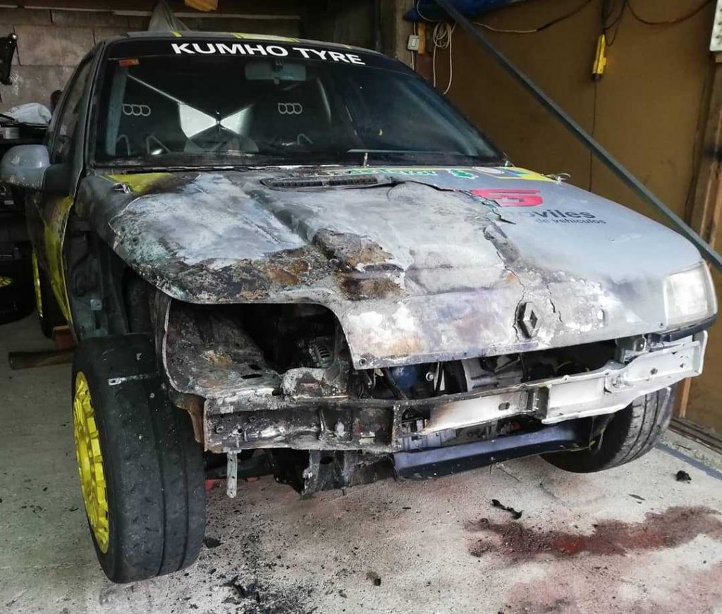 Un incendio daña el Renault Clio Williams de Jonathan Nuez y Aday Ortiz