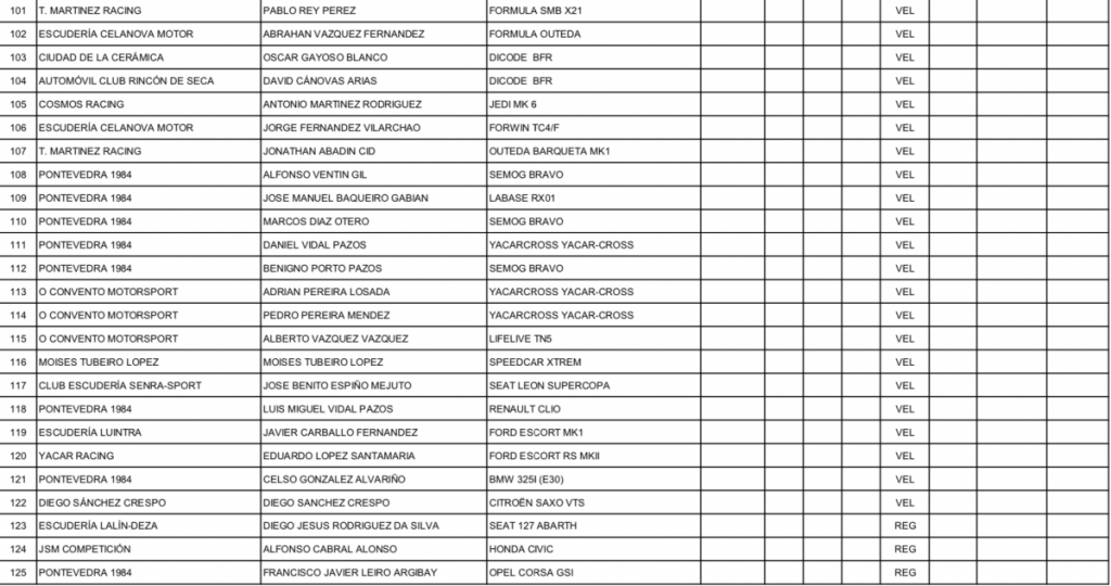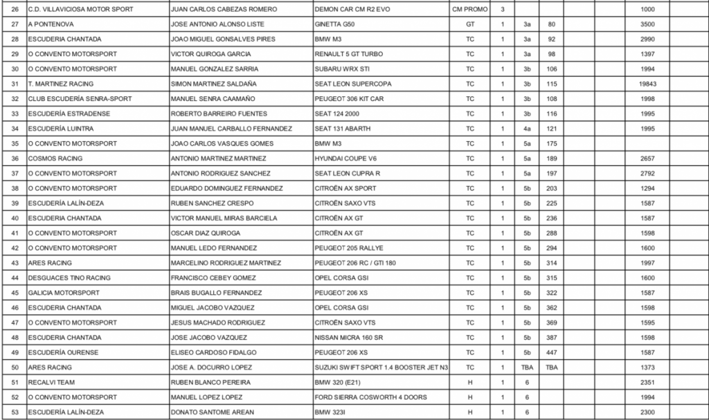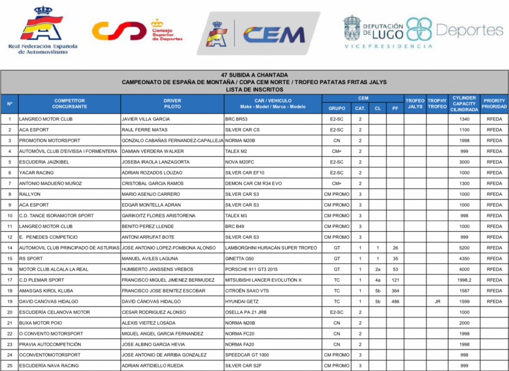 La lista oficial de inscritos de la Subida a Chantada ha sido publicada, donde los principales pilotos que luchan por las diferentes categorías del CEM estarán presentes en la única cita gallega con la montaña nacional.