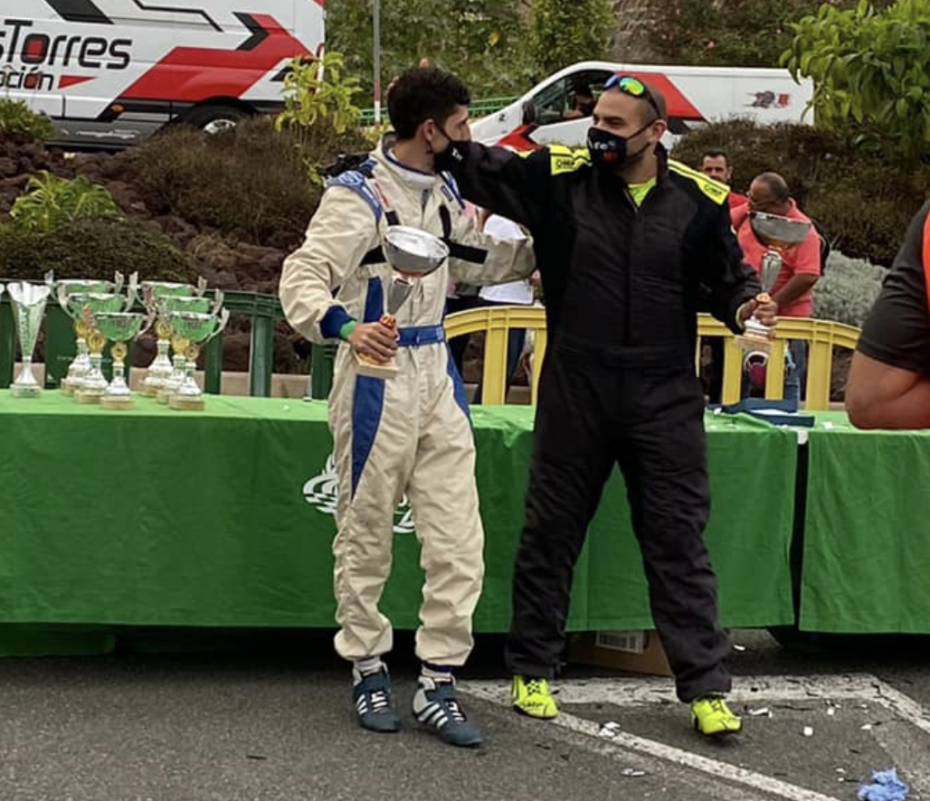Lo que viví al llegar a meta nunca lo he vivido, sabíamos que había ido rápido ya que bajamos 10 segundos con respecto a nuestra pasada anterior, pero no sabía si era suficiente o no… Hasta que el amigo Ayoze Benítez nos enseñó los tiempos y ahí fue cuando Ruymán Reyes Sánchez y yo liberamos la tensión vivida durante todo el día con unos gritos y una alegría inmensa. ¡Lo habíamos logrado! Para mi era impensable poder hacerlo porque todo el mundo sabe el gran piloto que es el señor Aythami Afonso.