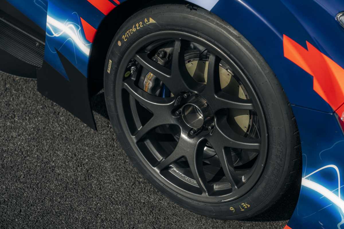El Veloster N ETCR está propulsado por cuatro motores eléctricos –dos por cada rueda trasera– fabricados por Magalec Propulsion. El paquete de baterías, fabricado por Williams Advanced Engineering, proporciona una potencia de 500 kW –equivalente a 670 CV– y 900 Nm de par. La caja de cambios de una sola relación también está fabricada por Magalec Propulsion. Los neumáticos todotiempo Goodyear Eagle F1 SuperSport, desarrollados para la temporada 2021 del PURE ETCR, están montados sobre unas llantas aerodinámicas especialmente diseñadas para este modelo: 10,5 pulgadas por 18 pulgadas en la parte delantera y 12 pulgadas por 18 pulgadas en la parte trasera. Los convertidores DC-DC están fabricados por Bright Loop.