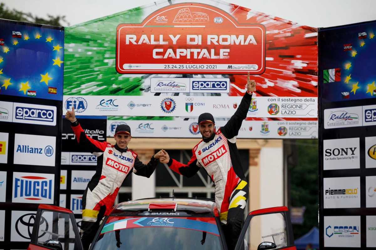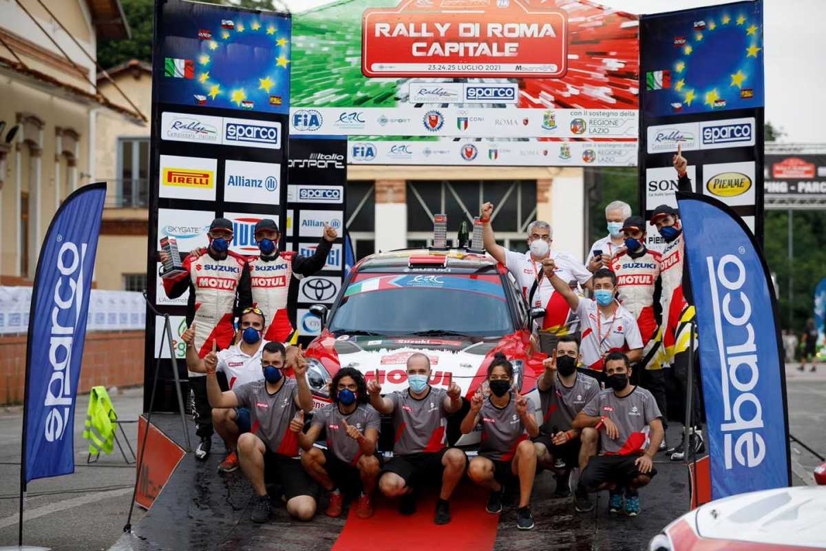 Javier Pardo y Adrián Pérez lograron llevar el Suzuki Swift R4LLY S del Equipo Suzukial primer puesto en la categoría ERC2 en el Rally di Roma Capitale 2021. Ganaron en la tierra polaca y ahora en el asfalto italiano.