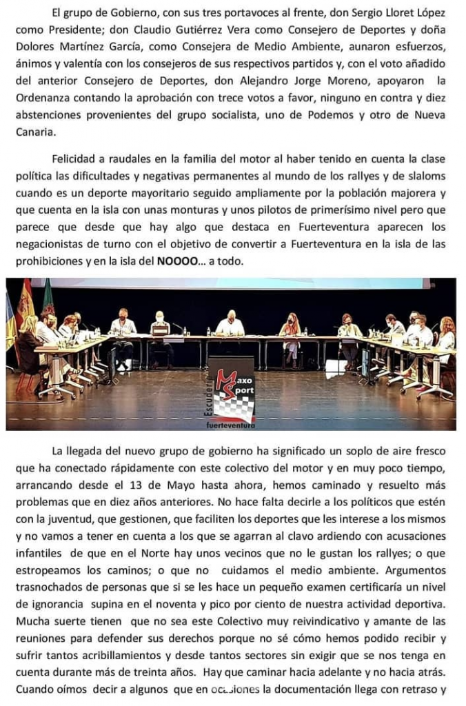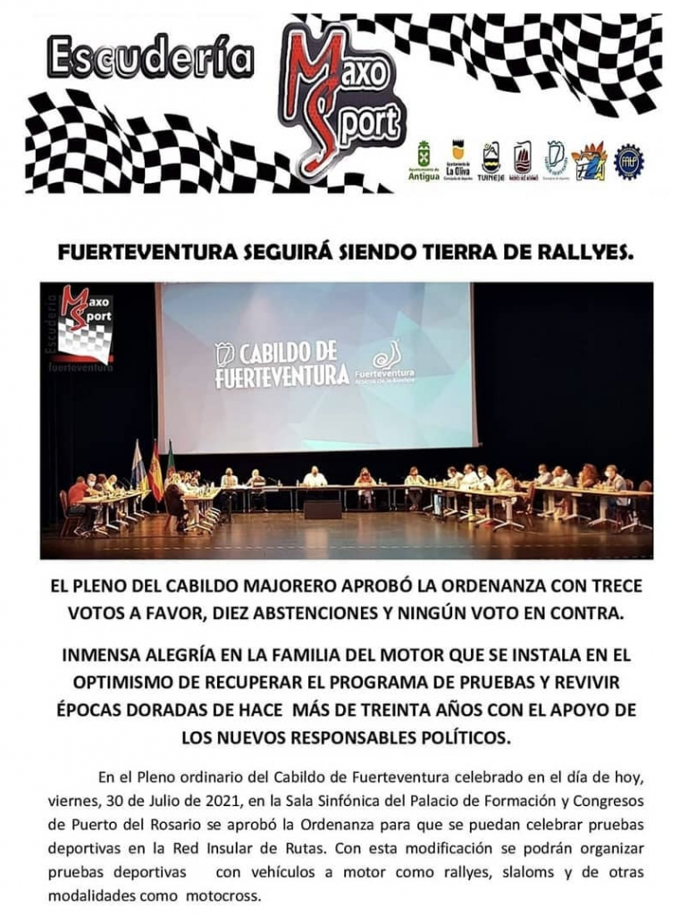 Publicamos la nota informativa remitida por el Club Deportivo Maxo Sport sobre el pleno del Cabildo Insular de Fuerteventura que aprobó el cambio de ordenanza que ahora permitirá poder celebrarse pruebas deportivas en la isla.