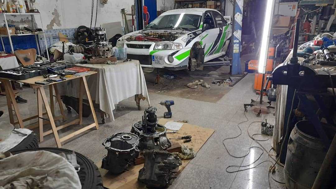 Los majoreros Aníbal Hernández y Jonathan Hernández, padre e hijo, trabajan en su Mitsubishi Lancer Evo VI para poder tenerlo listo de cara al próximo Rally Isla de Los Volcanes.
