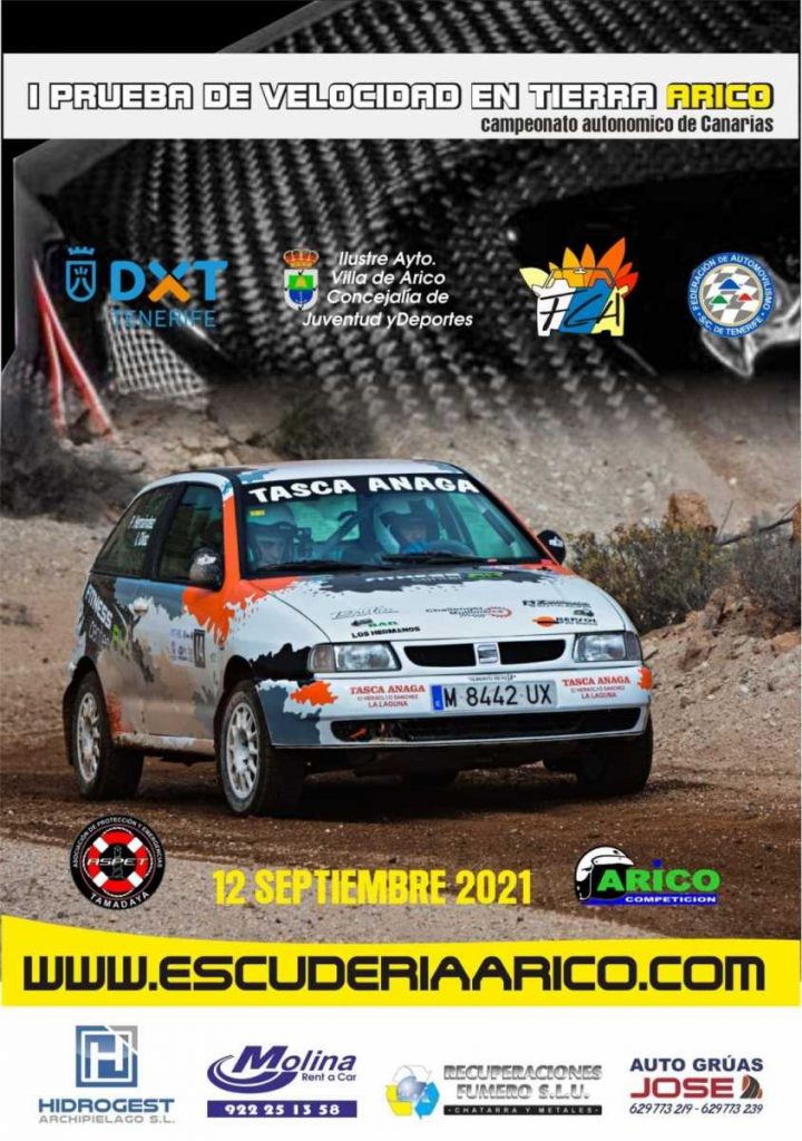 La Escudería Arico Competición ha publicado el cartel de la primera Prueba de Velocidad en Tierra Arico 2021, cita del Campeonato Autonómico de Canarias que se disputará el próximo 12 de septiembre.