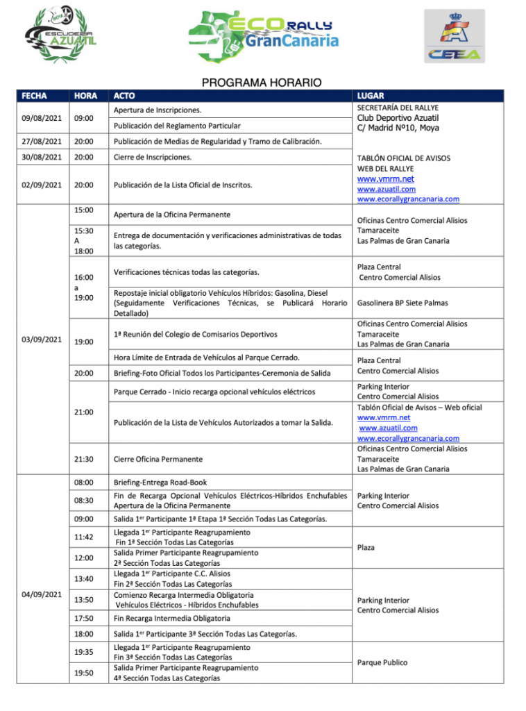 Todos los datos sobre el tercer Eco-Rally Gran Canaria, así como formalizar las inscripciones hasta el 30 de agosto, se pueden encontrar y realizar ya en nuestra web oficial: www.ecorallygrancanaria.com .Más información también en: www.vmrm.net y www.azuatil.com .