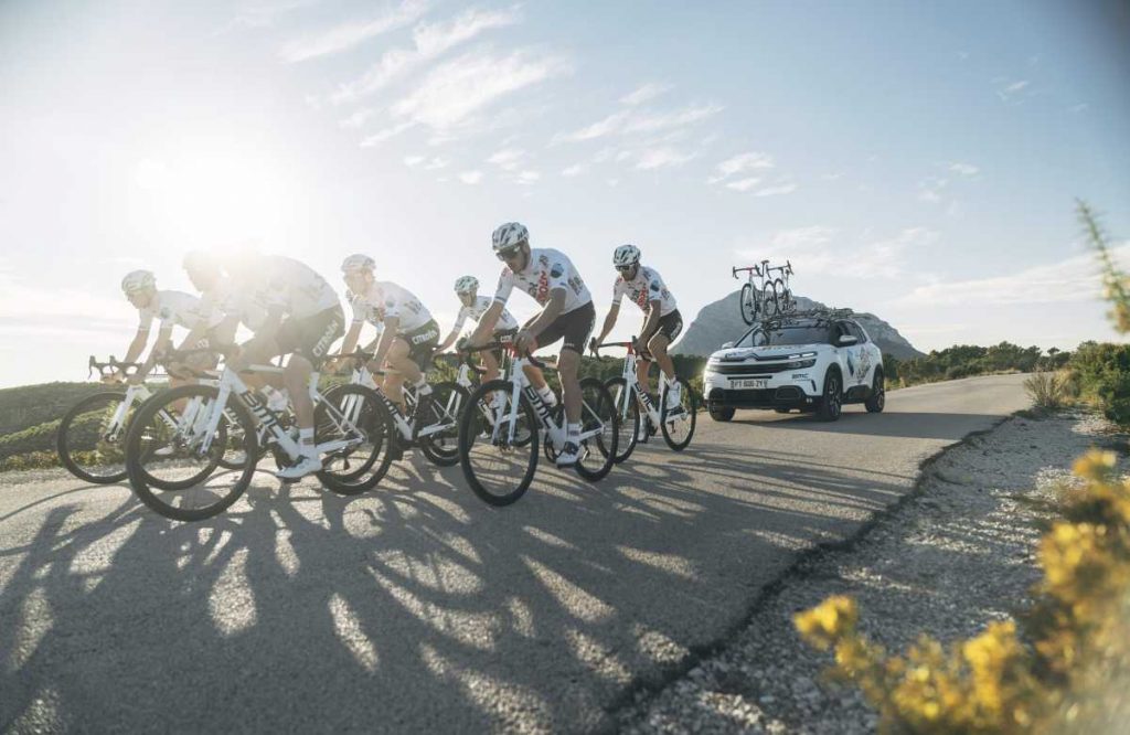 Todos ellos estarán respaldados por dos vehículos con una gran modularidad y espacio interior. El equipo francés se desplaza en sus competiciones a bordo del SUV Citroën C5 Aircross Hybrid y el Citroën SpaceTourer XL, dos vehículos que destacan por su sostenibilidad y su eficiencia además de ofrecer prestaciones que les permite acompañar sin problemas a los ciclistas en los puertos de montaña más duros.