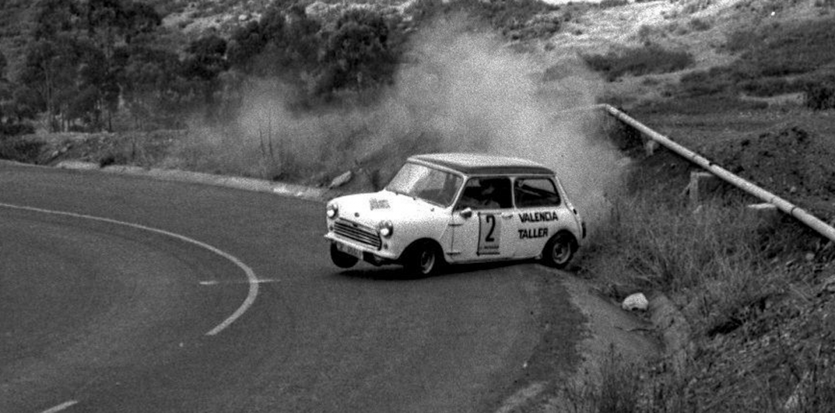 Carmelo Benítez (en la imagen), un orondo y temperamental piloto entusiasta de los diminutos coches ingleses, alineó su Austin Cooper S 1300 MKII (Grupo 1), unidades (90 CV) que dignificaron en el pasado el zorrocloco Peter Green o el indómito Juan Miguel Sarmiento, entre otros. Carmelo, pese al despìste y un zigzag corregido de chiripa, no levantó el pie del acelerador. En los entrenamientos (dos intentos) fraguó 3’06»9 (se refleja el incidente que registra Agustín Afonso) y 3’02»4, mientras que en las carreras oficiales establecería 2’34’5 y 2’34»3, situándose 22º de la General, 7º en Grupo 1 y 1º en la Clase (1300).