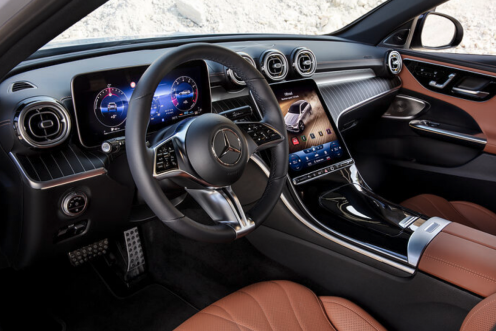 La Clase C ha dado de nuevo un gran paso adelante en su habitáculo en cuanto a digitalización e impresión de valor. En el interior se incorporan equipos destacados de la nueva Clase S, como el concepto de manejo y visualizado, interpretados aquí con un cariz más deportivo. A esto contribuye también el diseño envolvente de los equipos en torno al conductor. El tablero de instrumentos, incluyendo el visualizador central, está orientado ligeramente hacia él, en un ángulo de seis grados.