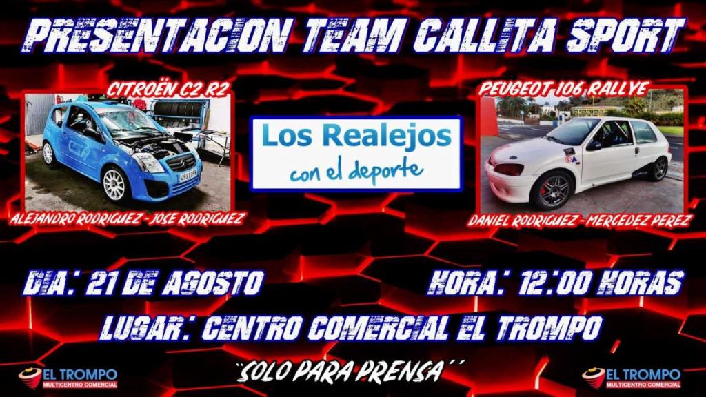El equipo tinerfeño Team Callita Sport presentará sus dos monturas de cara a la temporada 2021. Será el próximo sábado, 21 de Agosto, a partir de las 12:00 horas en el Centro Comercial el Trompo, en un *acto solo para prensa*.