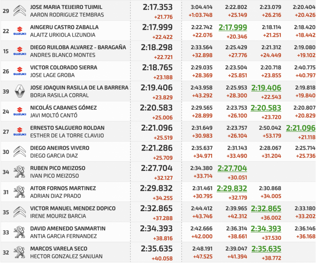Los siguientes puestos de la tabla de tiempos fueron cosa, por este orden, de Jans Solans (Citroën C3 R5), Luis Vilariño (Skoda Fabia R5), Javier Pardo y Joan Vinyes (Suzuki Swift R4LLY S).