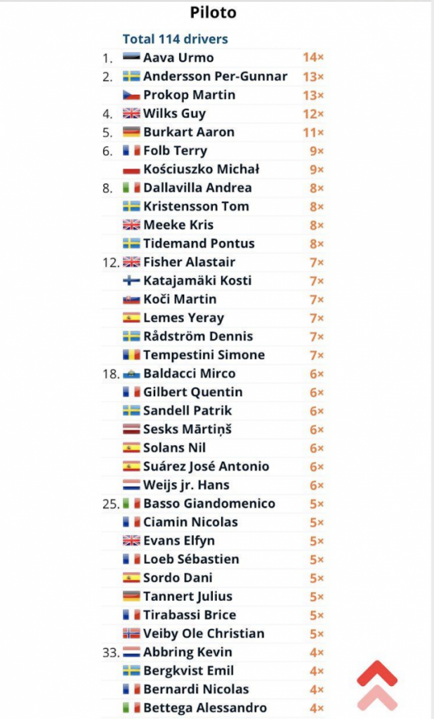 -Piloto con más tramos ganados en el Mundial Junior del WRC