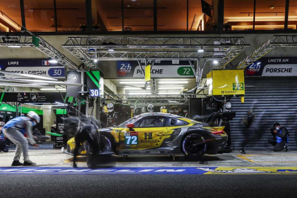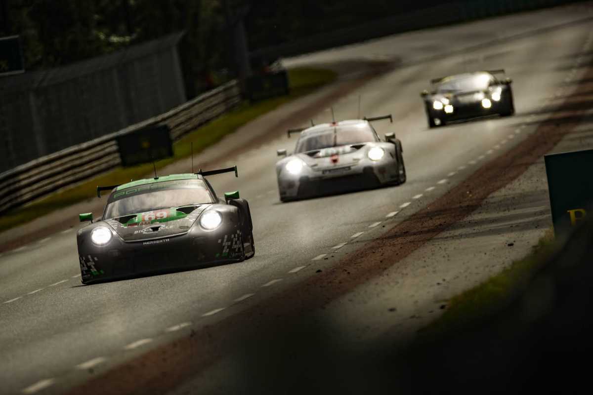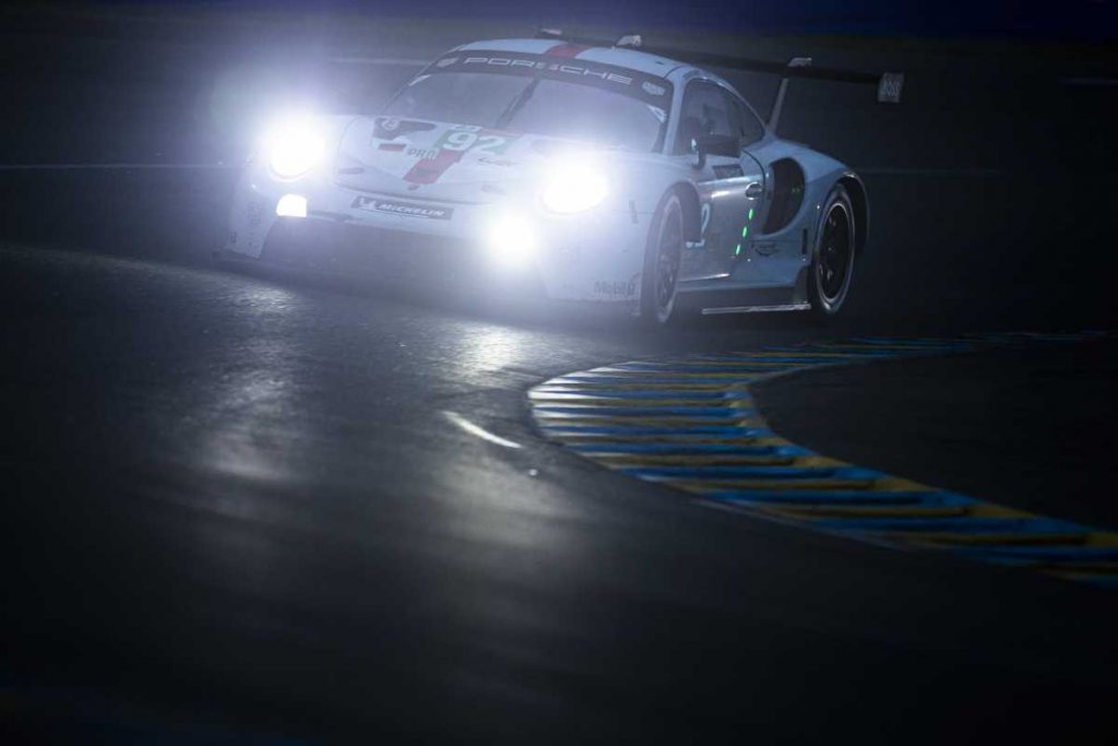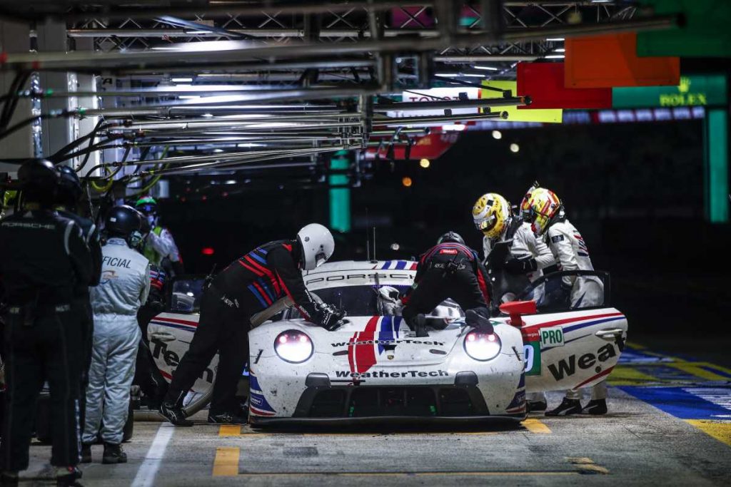Mientras los dos 911 RSR de fábrica entusiasmaron a los espectadores con su duelo por las posiciones tercera y cuarta, los dos vehículos de los equipos cliente inscritos en la categoría GTE-Pro se vieron obligados a pasar por boxes antes de lo previsto. El coche número 79, del equipo WeatherTech Racing, no pudo reincorporarse a la pista tras el accidente en el que se vio envuelto el estadounidense Cooper MacNeil el domingo por la mañana temprano. Por su parte, el vehículo del equipo HubAuto Racing, que había partido desde la pole position , tuvo que retirarse por un problema técnico poco después de la salida del sol.