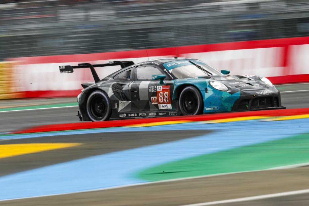 En la categoría GTE-Am, el 911 RSR que mejor lo hizo fue el número 77, del equipo Dempsey-Proton Racing, que cruzó la bandera de cuadros en quinta posición gracias al trabajo del piloto oficial Matt Campbell (Australia), del neozelandés Jaxon Evans y del propietario de la escudería, Christian Red (Alemania). El coche gemelo con el dorsal 88, que había comenzado la carrera desde la pole position en esta categoría, terminó en el puesto 13º. Los equipos cliente Absolut Racing y Herberth Motorsport concluyeron su debut en Le Mans en las posiciones sexta y séptima. Otros vehículos de Porsche, como los dos pertenecientes al equipo Project 1 y el número 99 de Proton Competition, tuvieron que retirarse. El equipo GR Racing perdió mucho tiempo debido a unas reparaciones muy largas tras un accidente y terminó la prueba en el puesto número 14.