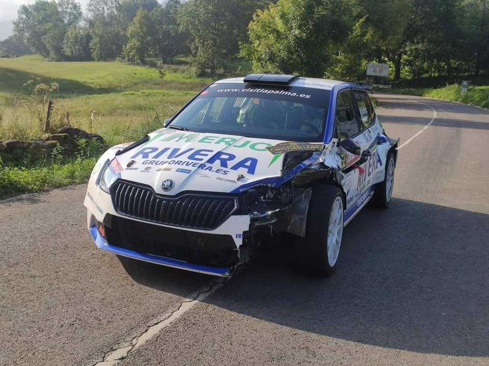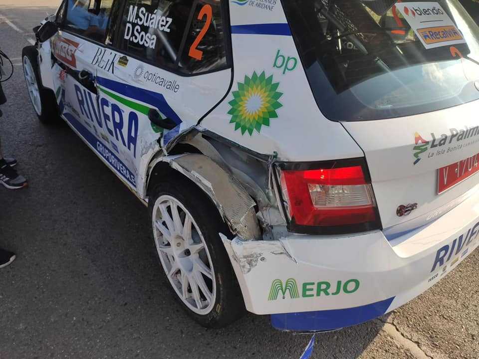 Los canarios Miguel Ángel Suárez y Daniel Sosa (Skoda Fabia R5) sufrieron un golpe en los primeros compases de la mañana de este sábado en la segunda jornada del Rally Cristian López, cita de la Copa de España de Rallys de Asfalto (CERA), por lo que en la asistencia se tuvieron que emplear a fondo para reparar los daños ocasionados.