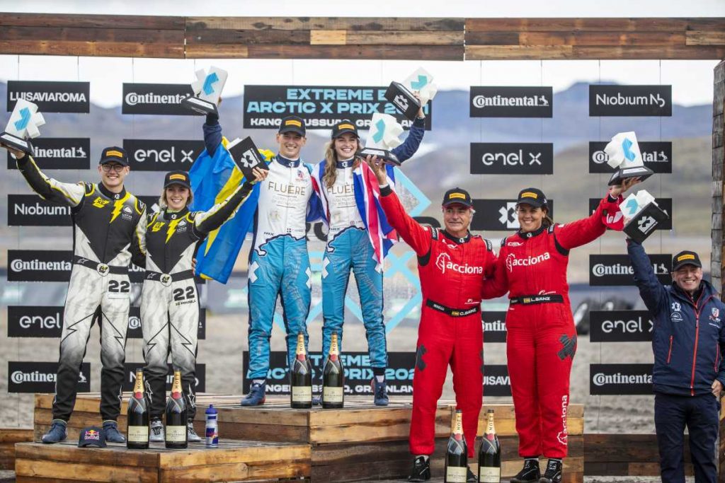 Los españoles Carlos Sainz y Laia Sanz lograron este domingo su primer podio en el campeonato de todoterrenos eléctricos, el Extreme E, a los mandos del Acciona Sainz XE Team, con el que fueron terceros en el Arctic X Prix, en el que la victoria fue para el dúo Timmy Hansen y Catie Munnings.