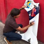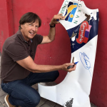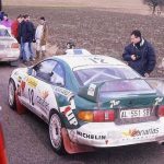 José María Ponce firma la aleta delantera izquierda del Toyota Celica GT Four Gr.A que pilotó en el Montecarlo