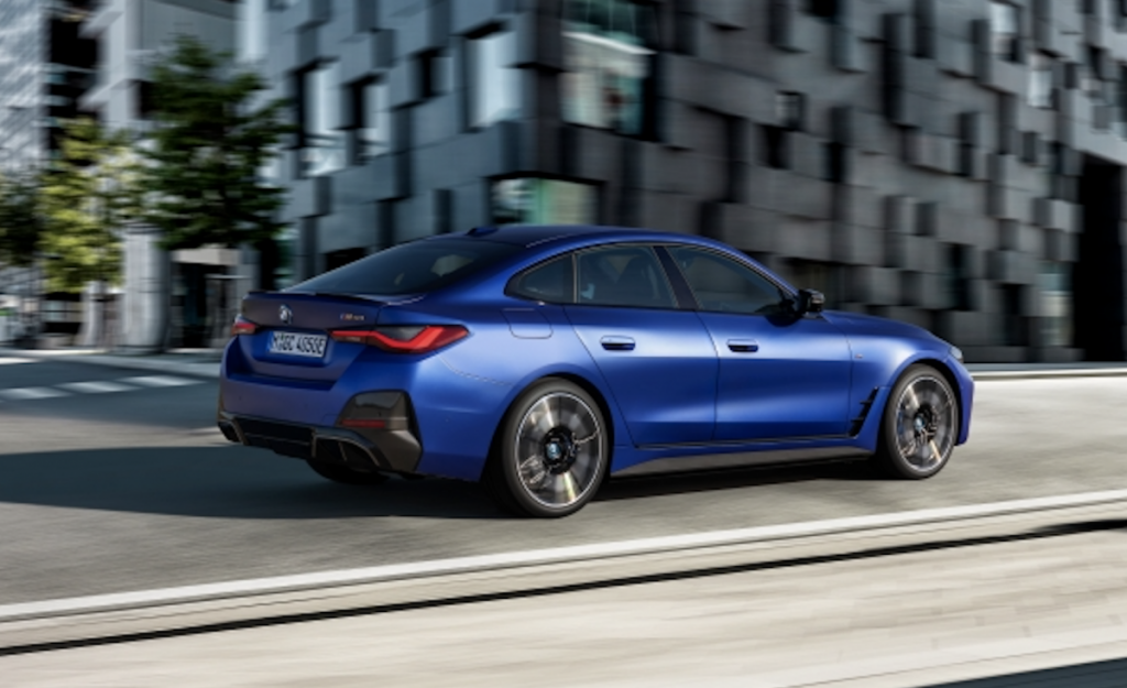 Un alerón específico M en el portón trasero completa el aspecto distintivo y orientado a las prestaciones del BMW i4 M50.