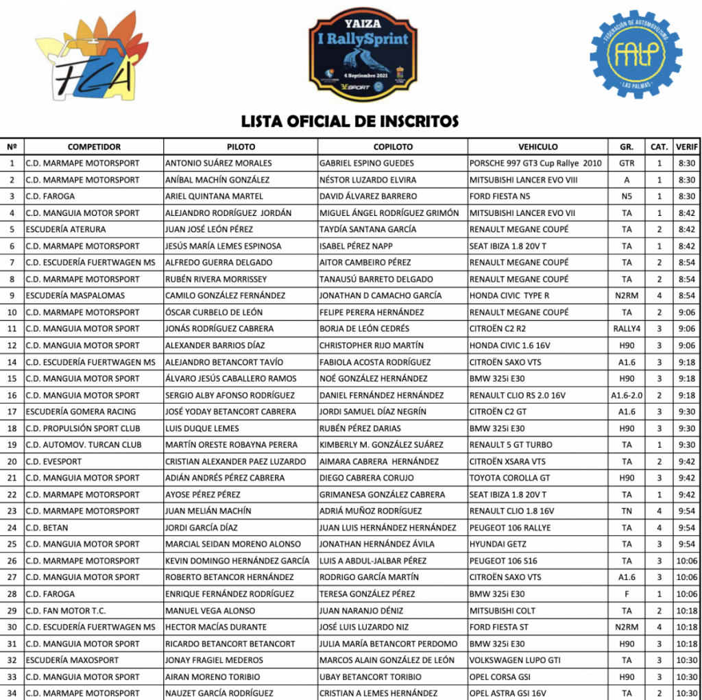 Lista Oficial de Inscritos 1º Rallysprint de Yaiza Visado![]()