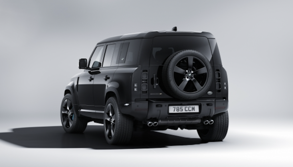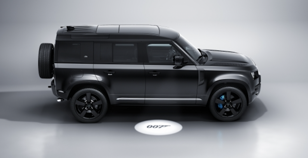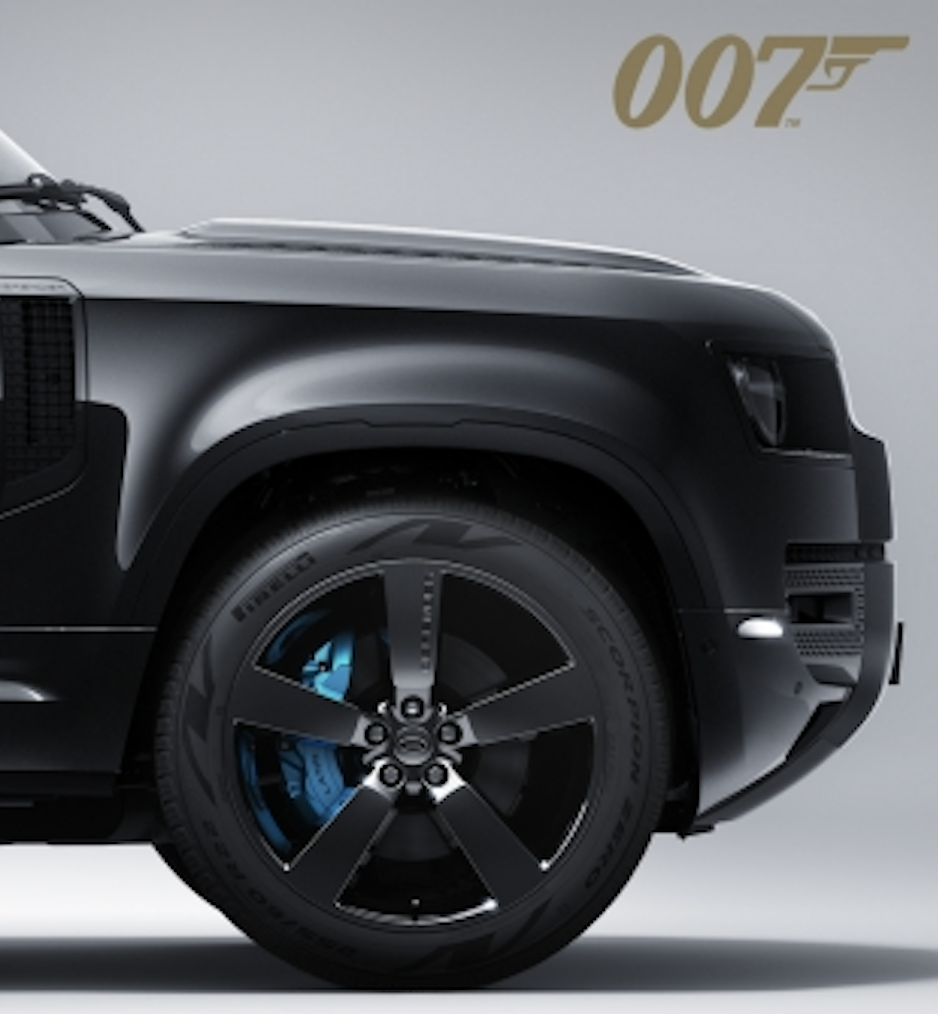 Disponible en dos versiones: Defender 110 y 90, e inspirado en las especificaciones de los Defender que aparecen en Sin tiempo para morir, el sigiloso Defender V8 Bond Edition incorpora un Extended Black Pack con llantas de aleación Luna Gloss Black de 22 pulgadas, pinzas de frenos delanteros Xenon Blue y una insignia trasera «Defender 007».