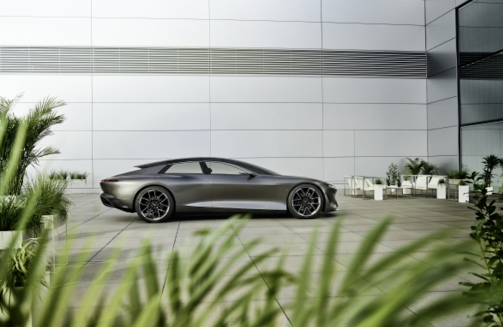En el proceso, el Audi grandsphere implementa de forma consecuente las condiciones específicas del sistema de propulsión eléctrica en el frontal: un voladizo corto, un capó plano y un parabrisas que se proyecta muy hacia delante como límite superior del amplio habitáculo. Sin embargo, a diferencia de muchos coches eléctricos, no tiene un aspecto futurista, sino que enfatiza los ideales de belleza tradicionales. El borde superior del capó se integra en la zona lateral del chasis en una línea horizontal, sugiriendo un largo compartimento para el motor, características asociadas a un GT. En la parte posterior esa línea continúa a la misma altura a través de los pasos de rueda traseros, abarcando todo el habitáculo y enfatizando su tamaño.