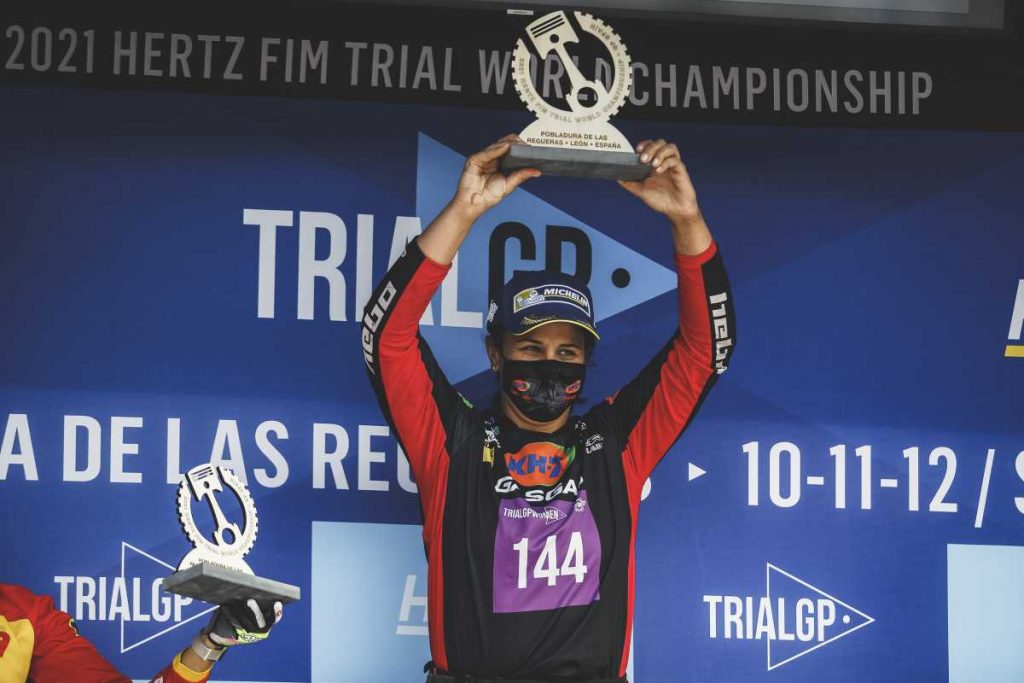 -La piloto de KH-7 se lleva el primero de los tres asaltos por el título tras vencer en la carrera inaugural del TrialGP de España, en Pobladura de las Regueras (León).