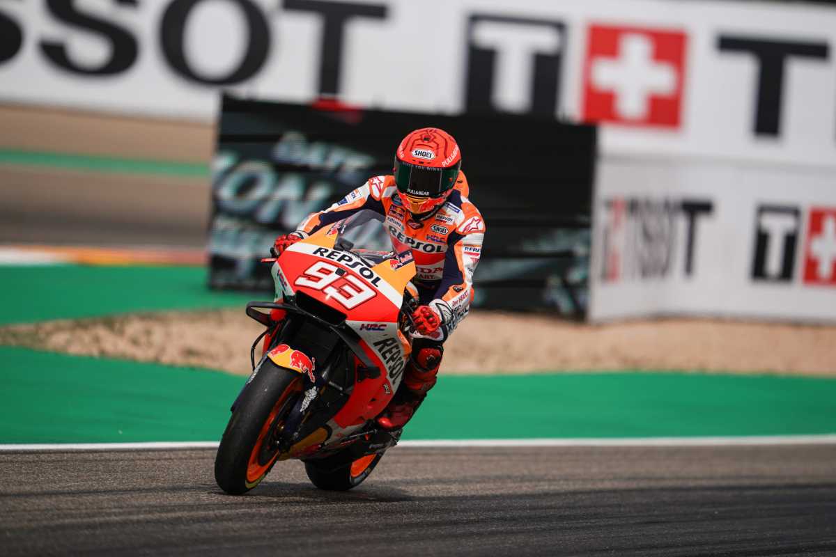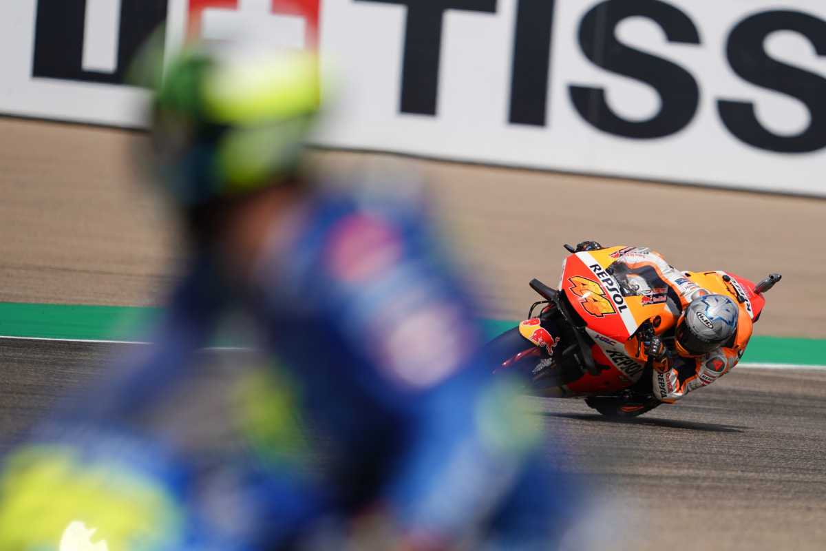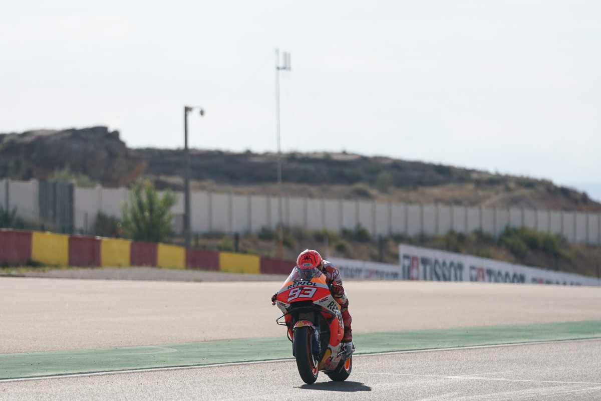 La lluvia finalmente no ha hecho acto de presencia hoy en MotorLand Aragón y el sol ha presidido todas las sesiones disputadas. Unos entrenamientos en los que Marc Márquez y Pol Espargaró se han situado entre los más rápidos, clasificándose en segunda y tercera fila de la parrilla para la carrera de mañana.