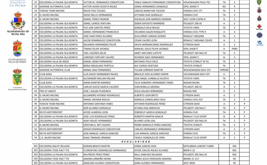 Lista Provisional de Inscritos 46 Rallye La Palma Isla Bonita