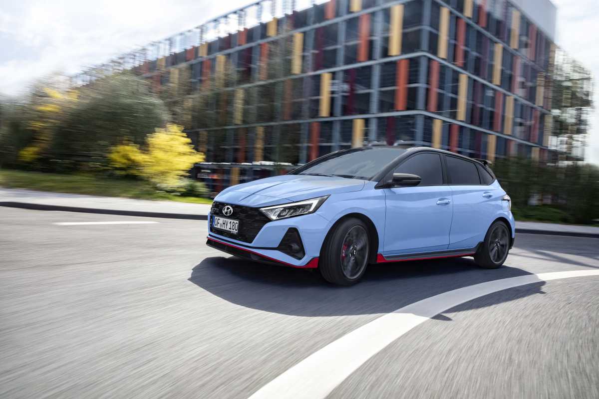 El Nuevo i20 N está disponible en siete colores exteriores, incluido el Performance Blue característico de la marca N.