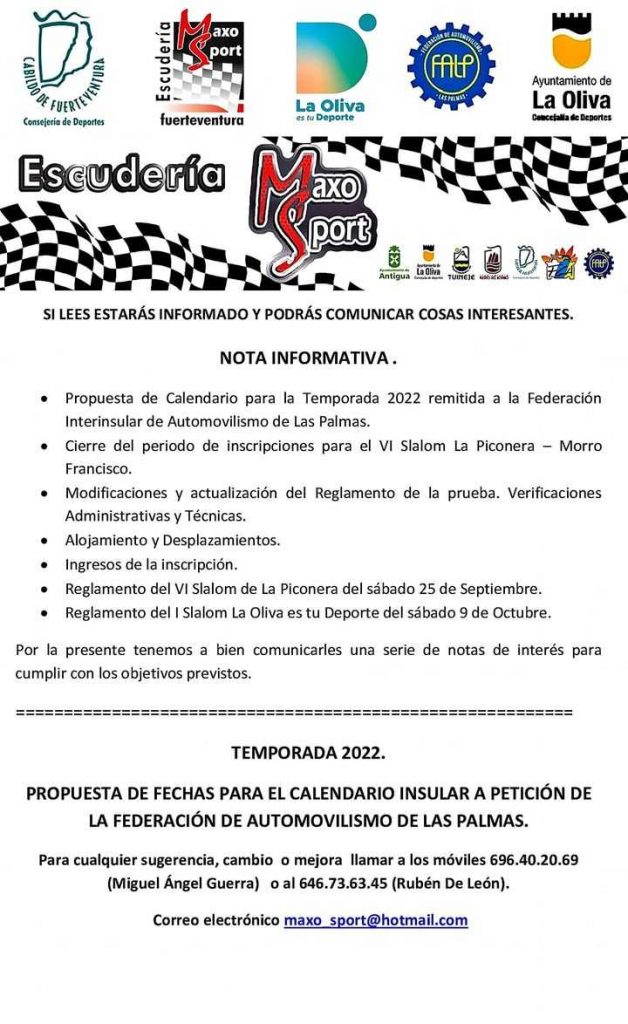 EL Club Deportivo Maxo Sport ha publicado su propuesta enviada a la FALP de calendario para las pruebas a celebrar en la temporada 2022 en la isla de Fuerteventura.