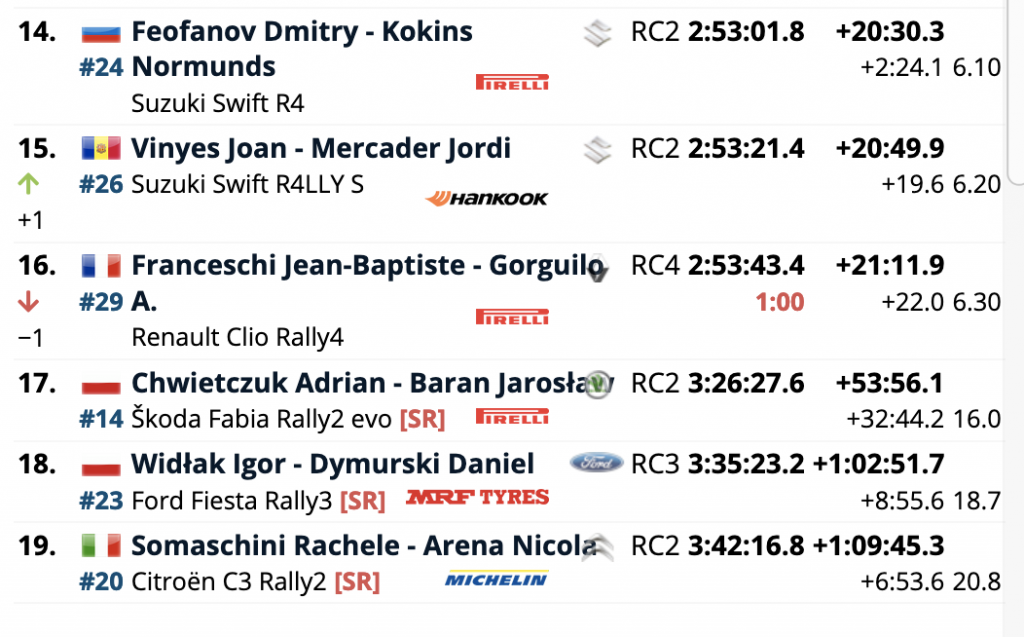 Un doble pinchazo en el TC7 significó que el actual campeón del ERC, Alexey Lukyanuk, no fuera más allá de la primera prueba del sábado después de un evento desafiante para el piloto de Saintéloc Junior Team. “Tuvimos dos pinchazos lentos”, dijo. “Sentimos uno en la mitad del tramo, así que decidimos cambiarlo. El ánimo estaba completamente deprimido porque era obvio que no podíamos luchar por ningún punto, así que no presionamos demasiado para hacerlo rápido. Al final de la etapa tuve la sospecha de que teníamos otro pinchazo en la parte trasera y en la última curva era obvio que teníamos dos. El plan era el de tratar de ser lo más rápido posible, por eso solo pusimo uno de repuesto».