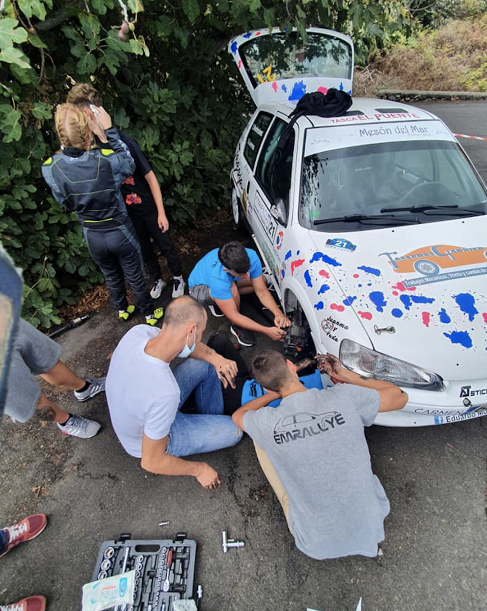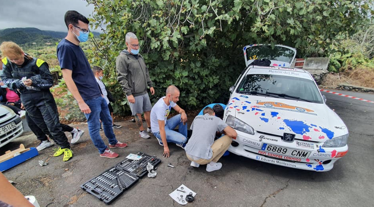Balance del Rally Isla Bonita… Salíamos el viernes y el coche no era lo que habíamos probado. Las bujías no estaban bien y el coche rateaba mucho… Bueno, el sábado bujías nuevas y el coche era otro… ¡Cómo corría en el tramo de Las Nieves! Quitando fallos de conducción, era lo que buscábamos ya que por eso que habíamos hecho esta inversión… El coche corría y nos divertimos… Llegamos a la salida del tramo de Las Breñas y estaba parado por el accidente de un compañero… A parte de que salimos fríos, lo hicimos descolocados, por lo que un fallo de conducción propiciaba que metiera la rueda derecha en una alcantarilla, rompiendo un palier y algo más…