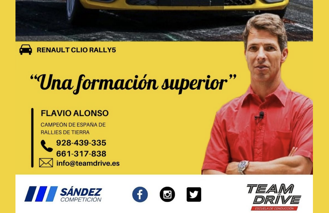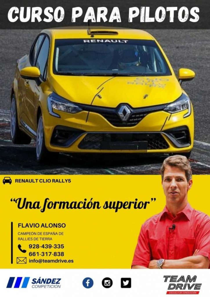 El preparador grancanario Sández competición y el ex campeón de España de Rallys de Tierra, Flavio Alonso, se han asociado para impartir cursos con el nuevo Renault Clio Rally5.