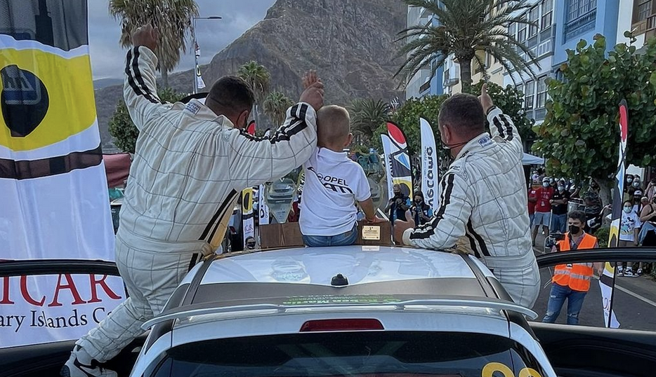 La alegría al final de la prueba del Campeonato de La Palma era evidente, compartiendo la alegría en el podio con su hijo.