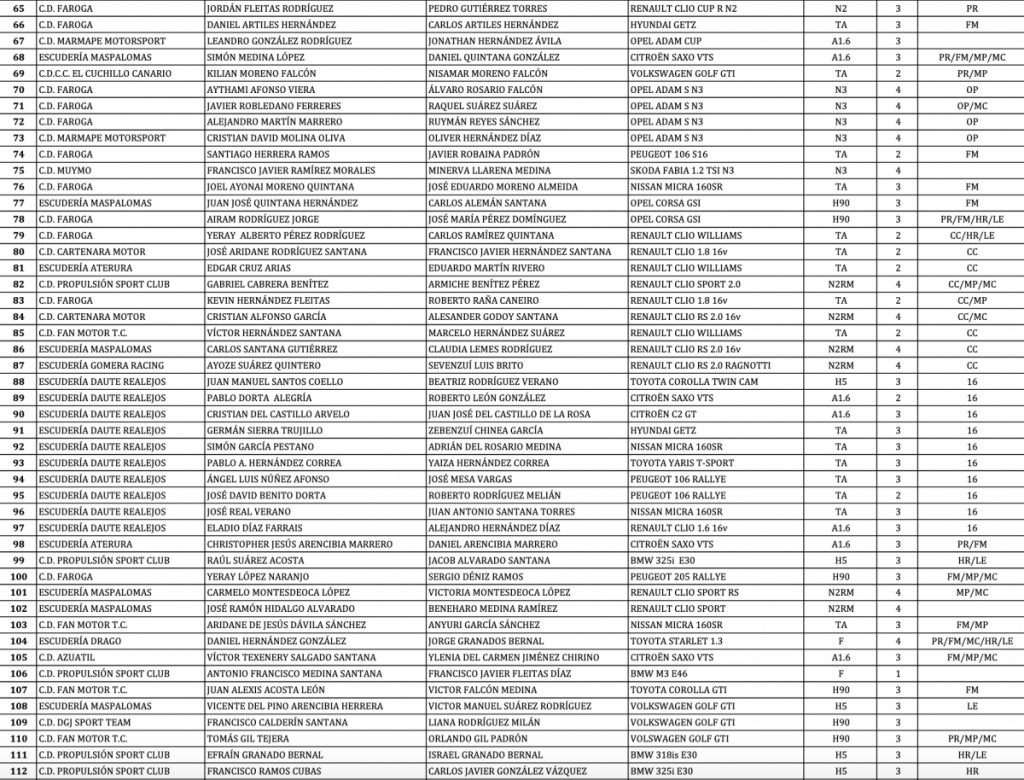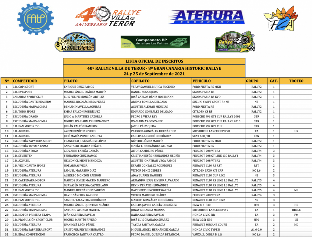 Publicamos la lista de inscritos del Rally Villa de Teror, cita del Campeonato de Canarias y Las Palmas de Rallys de Aafalto 2021,