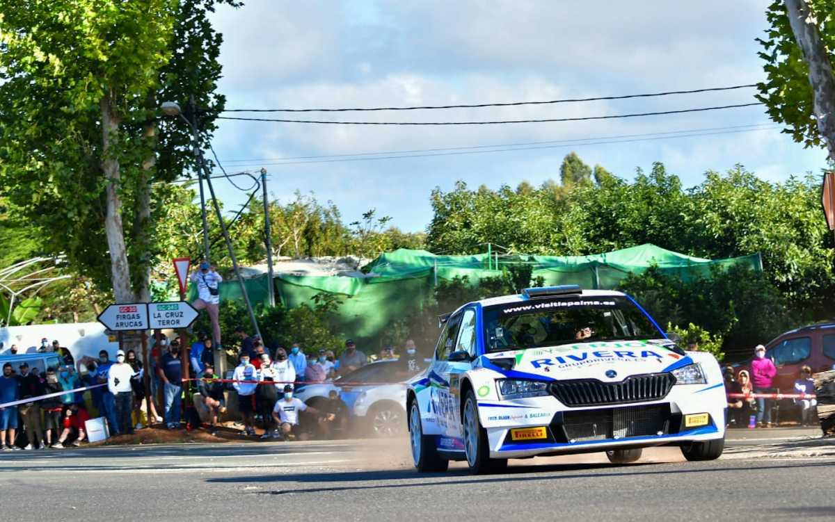 El palmero Miguel Suárez y al grancanario Daniel Sosa (Skoda Fabia Rally2 Evo) rodaban en tercera posición del Rally Villa de Teror hasta que una penalización de cinco minutos calentar de manera ilegal los neumáticos, les latró, aunque pudieron acabar undécimos.