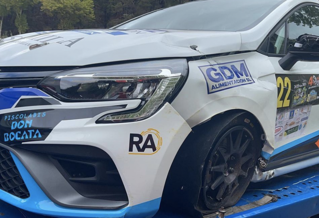 Tras un primer bucle con sabor agridulce, dominando la categoría de forma inesperada en nuestra primera carrera a bordo del Clio Rally 5, con algún que otro problema y percance debido a fallos de neumáticos, llegó en el TC4, lo que nos haría tomar el camino del abandono. Un pequeño toque que nos dañaba la rueda delantera izquierda, siendo imposible continuar.
