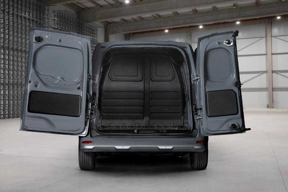 La zona de carga integra grandes puertas correderas laterales que facilitan la descarga de la furgoneta y la posibilidad de tener puertas traseras 63:33 con apertura de 180 grados o un portón trasero en la parte trasera. También incluye soluciones de almacenamiento inteligente y un espacio dedicado para herramientas de oficina a bordo.
