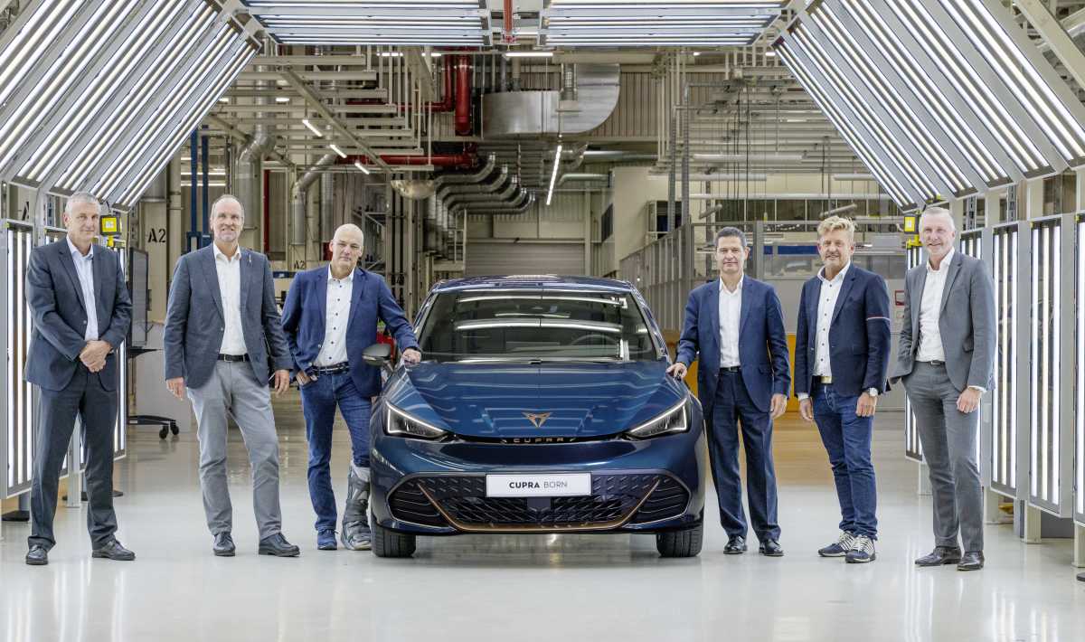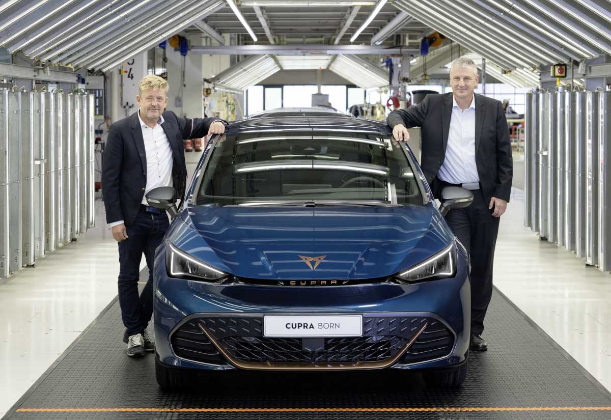 CUPRA comienza la producción en serie de su primer coche 100% eléctrico, el CUPRA Born, en la planta de Zwickau (Alemania). El consejero delegado de la marca, Wayne Griffiths, y los miembros del Consejo de Administración visitaron la mayor fábrica de vehículos eléctricos de Europa para conmemorar el inicio de la producción del nuevo modelo. Fueron recibidos por Stefan Loth, presidente del Consejo de Administración de Volkswagen Sajonia y antiguo director de la planta de Martorell.