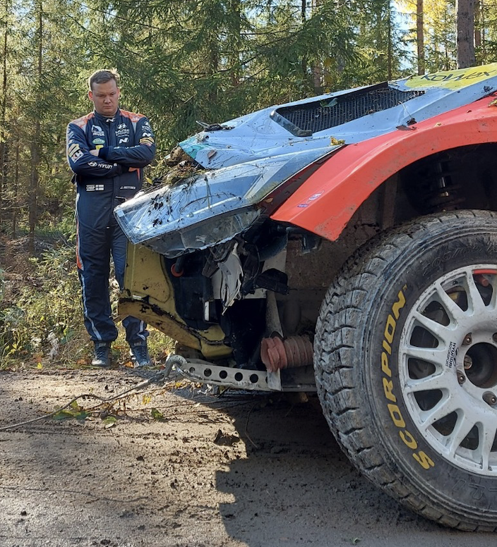 Los deportistas del equipo Hyundai Motorsport estaban prepara do su participación en el Rally de Finlandia hasta que sufrieron una fuerte salida de carretera, sin consecuencias físicas para piloto y copiloto, pero dejando seriamente dañado el Hyundai i20 N Rally2.
