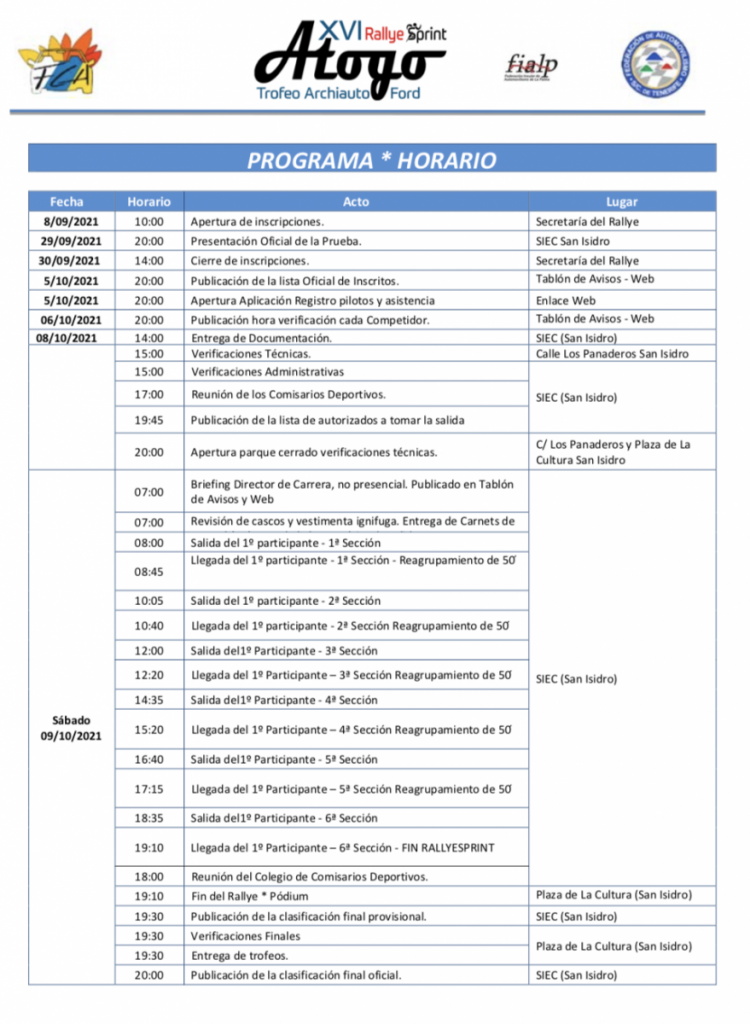 01/10/2021 – Cierre de inscripción de la prueba http://www.rallysprintatogo.com/