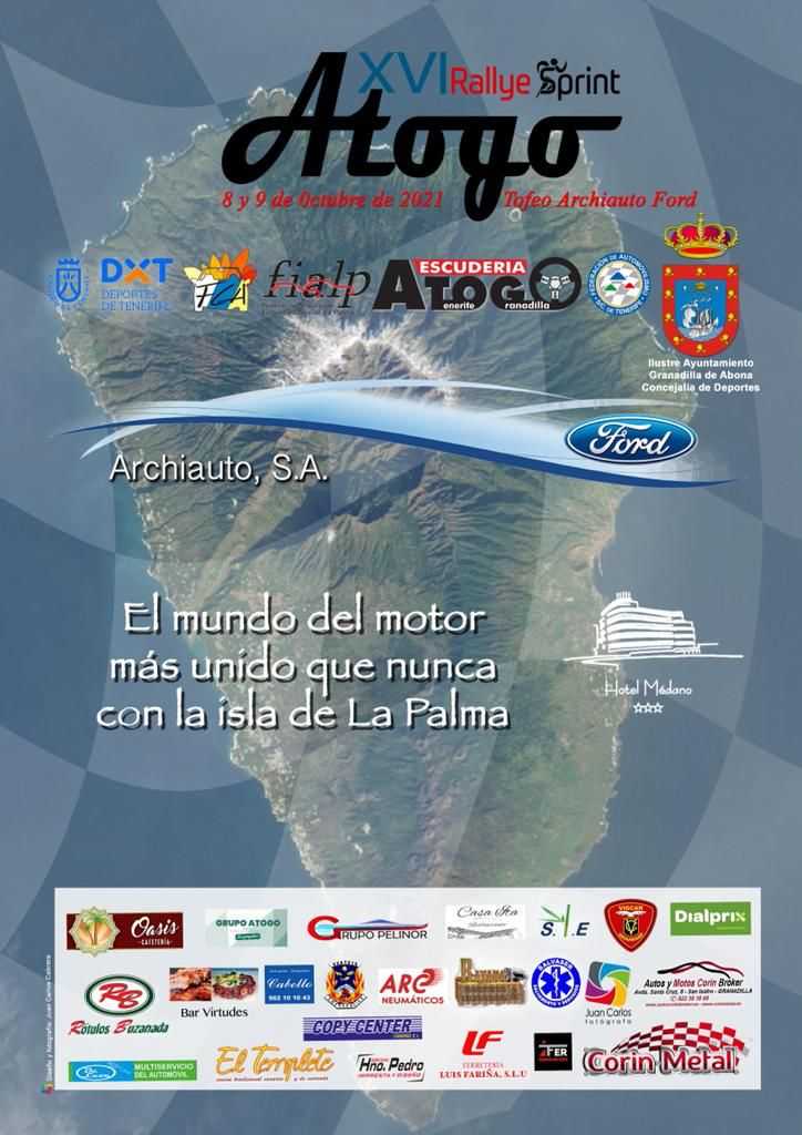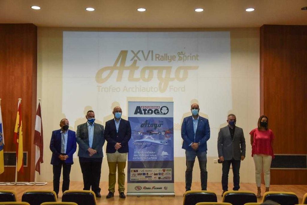 Un acto que giró alrededor del apoyo de la Escudería Atogo y de todos los integrantes de la carrera hacia la isla de La Palma. El cartel oficial luce la isla de La Palma al que se le rendirá todo tipo de actos, gestiones y campañas, antes, durante y después del rallye Sprint. El mensaje fue claro por parte de todos los intervinientes, gratitud hacia los patrocinadores que siguen haciendo un esfuerzo sobrehumano, la necesidad de seguir teniendo sentido común a la hora de acudir a la prueba y sobre todo cuidar el medio ambiente alrededor de Atogo.