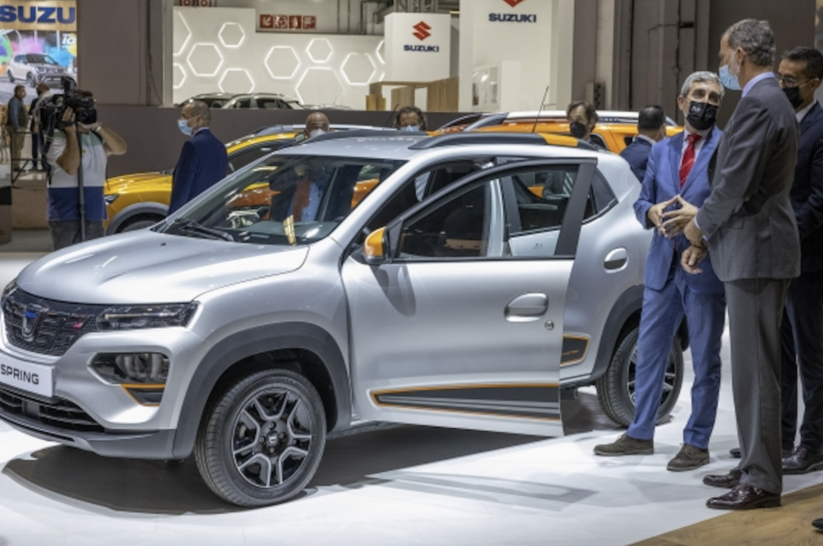 S.M. el Rey y el Presidente del Gobierno, acompañado entre otras personalidades por la Ministra de Industria, se han interesado especialmente en el nuevo Dacia Spring, el vehículo 100% eléctrico más económico del mercado europeo y que convierte la movilidad eléctrica accesible para todos. Felipe VI se ha llegado a subir en el nuevo modelo eléctrico de Dacia, donde ha apreciado tanto su habitabilidad como su look SUV. También le ha llamado la atención el precio por el que se comercializa en el mercado, ya que se puede adquirir desde 9.705 € con Plan Moves incluido.