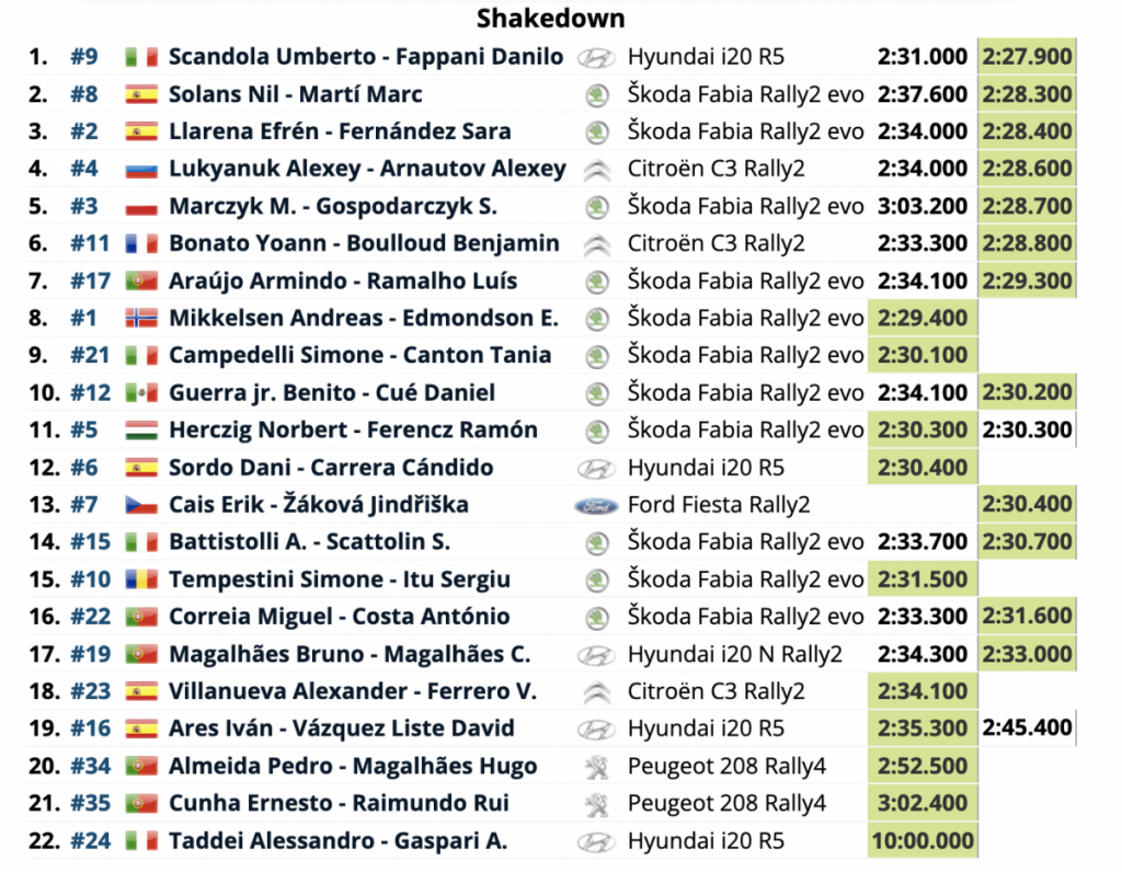 Umberto Scandola fue quinto para el equipo Hyundai Rally Team Italia seguido de Miko Marczyk (ORLEN Team) con Norbert Herczig, de Škoda Rally Team Hungría, séptimo, y Simone Tempestini octavo. Efrén Llarena (Rallye Team España) y Yoann Bonato (CHL Sport Auto) completaron el top 10.