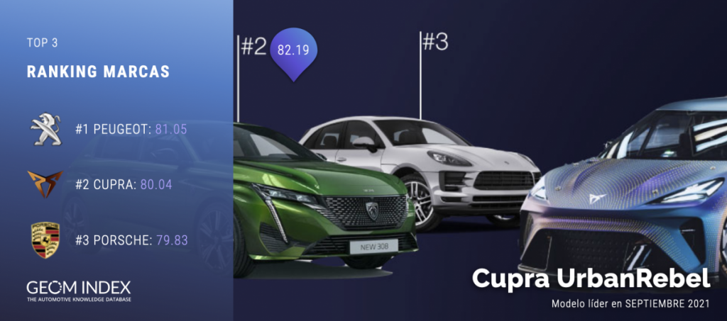Peugeot lidera en septiembre el GEOM Index de marcas, mientras que Cupra y Porsche completan las posiciones de honor.