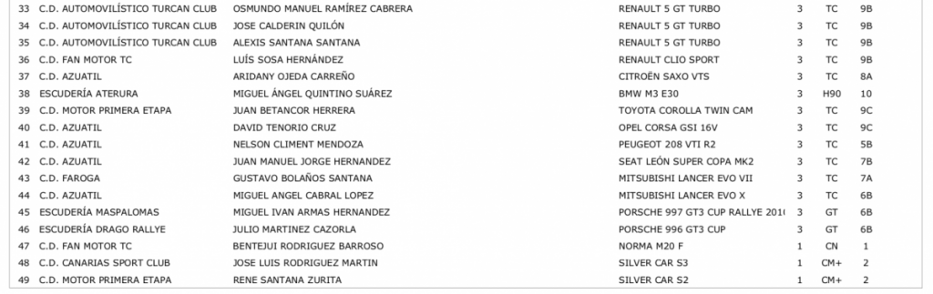 Ampliando la información, tras la publicación ahora de la lista oficial por orden de salida, se pasa ya a la jornada del viernes con las verificaciones en el parque Pico Lomito de Moya de 17 a 20 horas. El sábado se arranca con la foto de familia de todos los participantes y briefing a las 9 de la mañana y a continuación la primera manga de reconocimiento a las 10 horas. De forma consecutiva, según el desarrollo de la carrera, se realizan las dos mangas oficiales y el broche final en el pueblo de Fontanales.